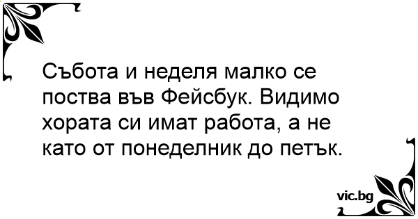 Sbota I Nedelya Malko Se Postva Vv Fejsbuk Vidimo Horata Si Imat Rabota A Ne Kato Ot Ponedelnik Do Petk
